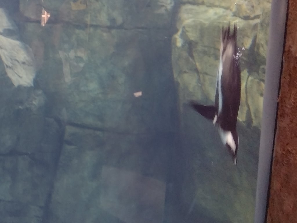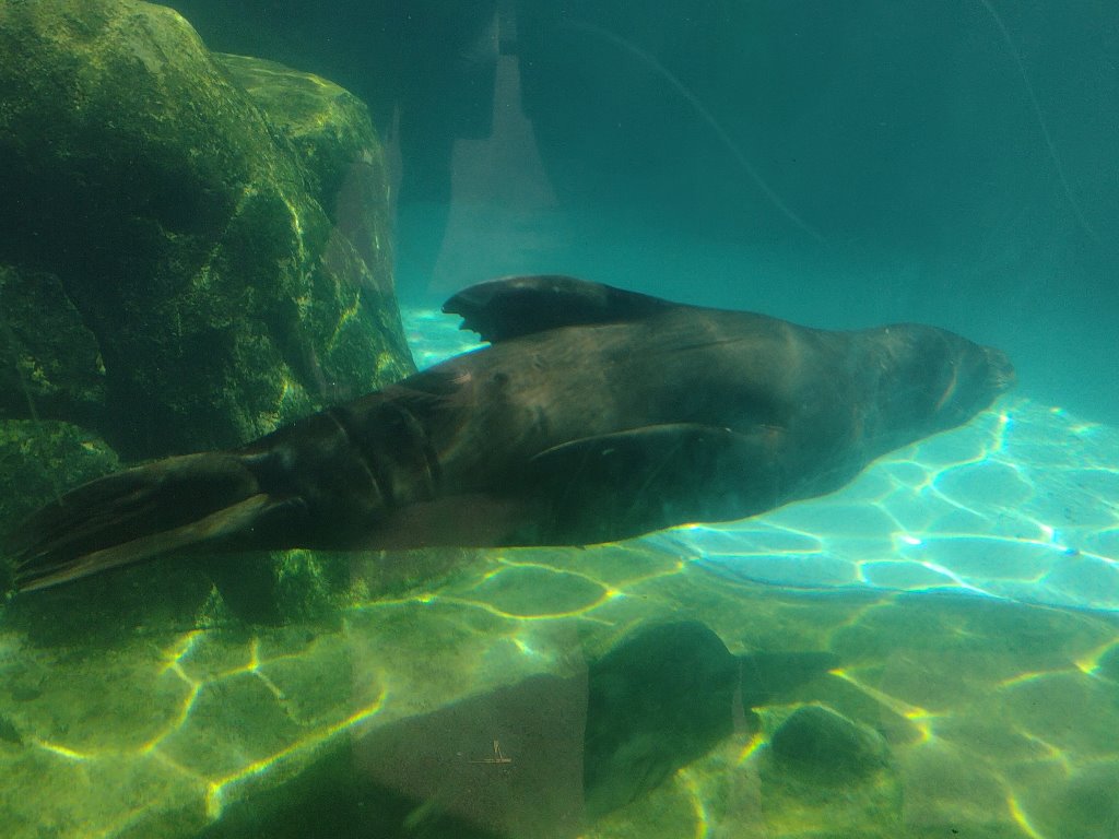 The zoo was set up with giant windows in all the underwater exhibits to let you see into the water from lower ground. Of course, the Penguin House was one of them, but we also got looks at river otters and seals in two separate exhibits. The members of both species seemed to be in a bit of a groove; one of the otters was stuck doing flips for two minutes maybe, and the seal was busy doing laps underwater, which gave me a few chances to get pictures of him.