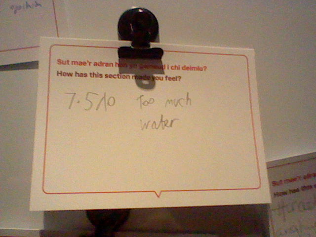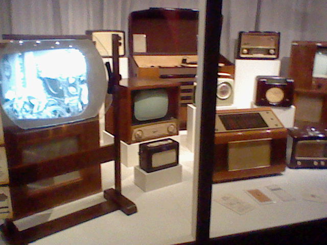 We saw some 50s TVs and radios the moment we walked in, one of which was retrofitted with a modern LCD panel to show off some kinda introduction to the exhibit (as much as broadcasting a low-power analog TV signal to get those TVs actually showing off the video would've slapped). A lot of the early exhibit was actually about early radio in Wales, but these were too dark for my DSi to get any good photos of.
