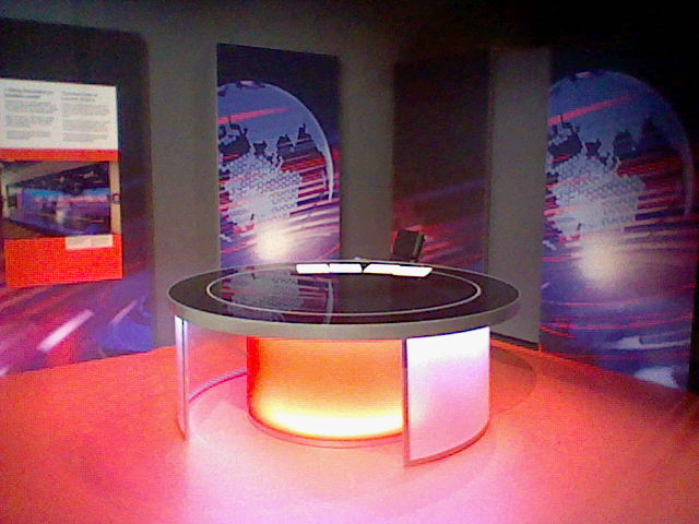 They also had the news desk! They let you sit at it and take pictures of yourself and your friends, but the DSi camera has such low dynamic range that I literally appeared pure white when Caby tried to take a picture of me. We were too busy looking at all the exhibit stuff to think of using a different camera. (If you're curious, the papers were just exhibit text talking about BBC News, there was no actual news printed on them.)
