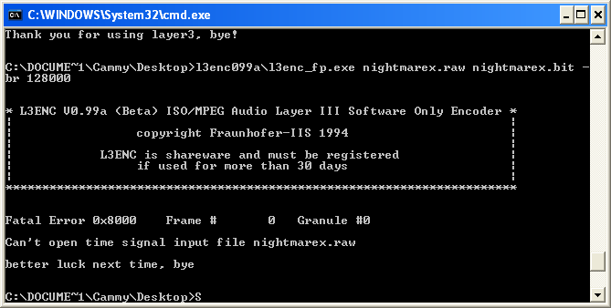 x3enc.exe nightmarex.wav nightmarex_xing.mp3 -B64 - BladeEnc 0.94.2