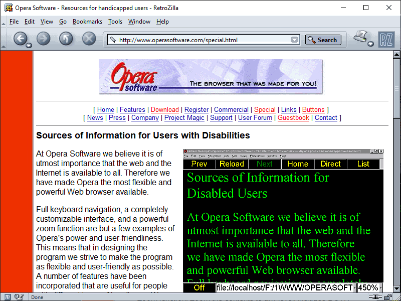 At the eleventh hour, however, a mere nine months before I restarted work on this restoration, someone with a pretty funny domain name (fair warning, other parts of the site are NSFW) put up an extensive archive of Operas for OS/2, QNX, Linux, Mac, J2ME, various makes and models of 2000s phones and PDAs for Opera Mini, and of course, Windows. All the versions I needed were in this archive. I can't stress it enough--whoever runs this site made this restoration possible. As such, if you happen to be a multilingual sort, direct from Protoweb, you can try Opera in your language, perhaps even hooking your copy back up to Protoweb for some premium browsing as it was in 1998. Enjoy!